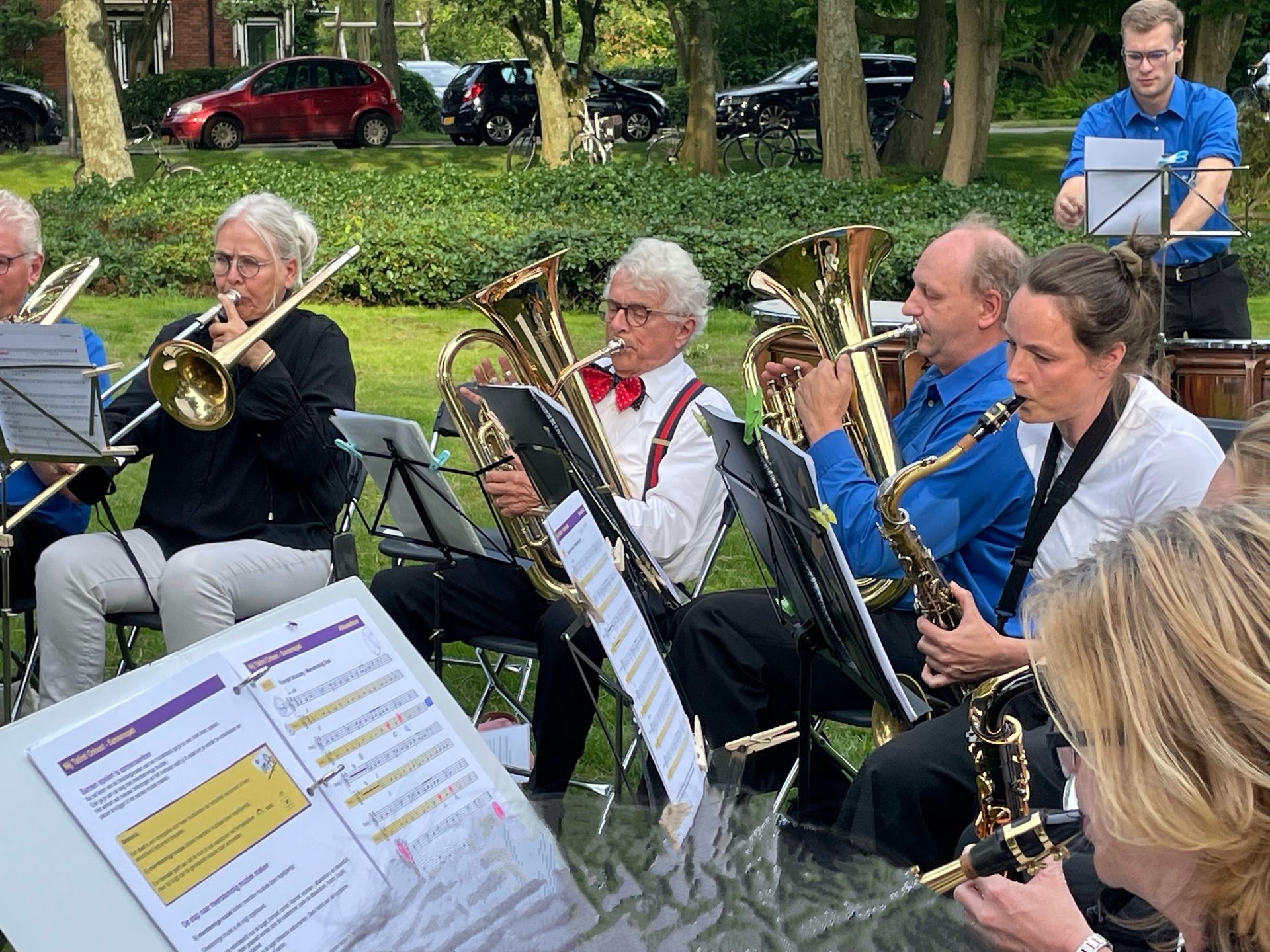 Hier blaast De Trombonesectie volledig in stijl op hun trombones met Blades of Toledo op een mooie zomeravond voor groot publiek